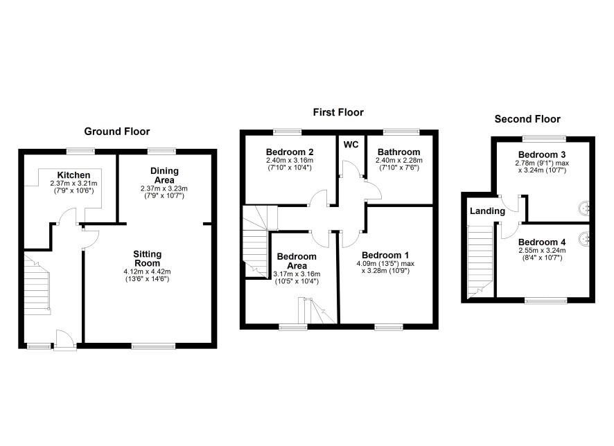 Bedroom One 13'5 max x 10'9 Bedroom Two 7'10 x 10'4 Bathroom 7'10 x 7'6 Separate WC Bedroom Area 10'5 x 10'4