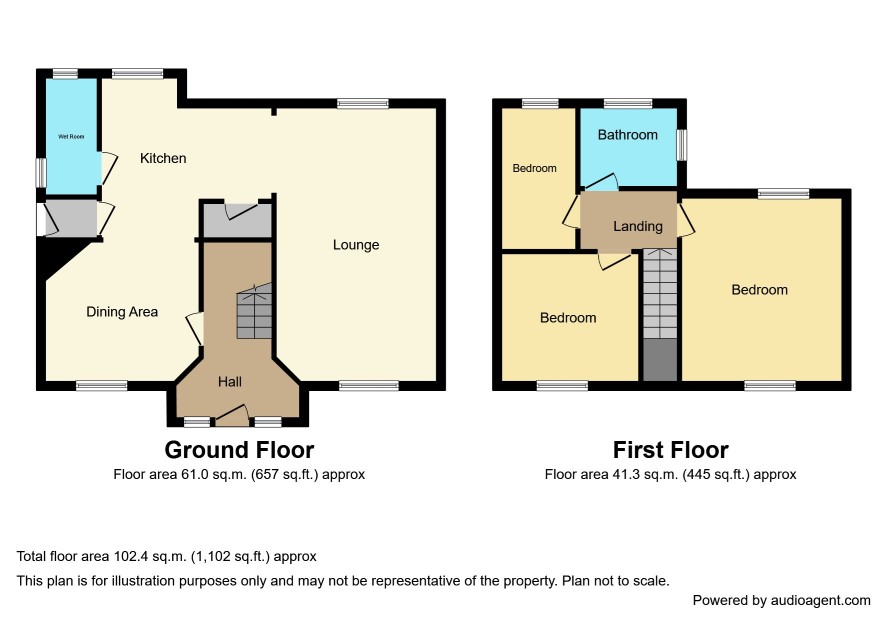 Hall Lounge 14'3 x 11'9 Dining Area 11'3 x 10'9 Kitchen 10 x 7'9 Wet Room 5'9 x 3'