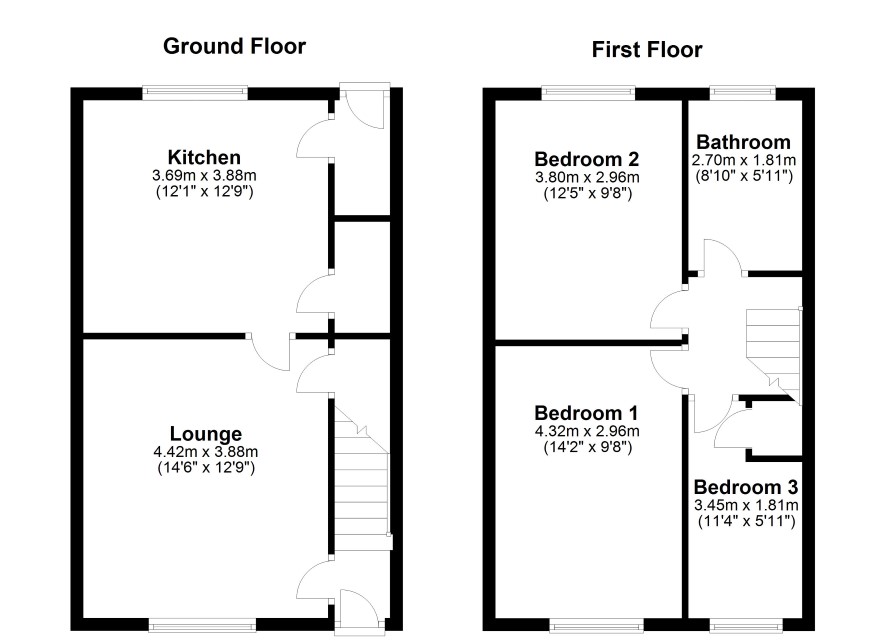 Bedroom One 14'2 x 9'8 Bedroom Two 12'5 x 9'8 Bedroom Three 11'4 x 5'11 Bathroom 8'10 x 5'11