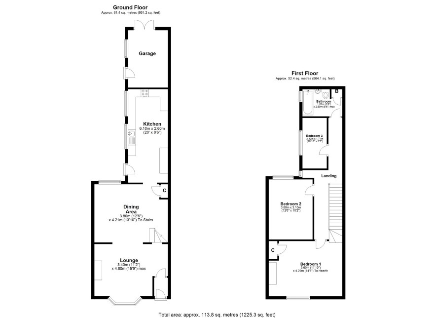 Bedroom One 14' x 11'10 Bedroom Two 12'6 x 10'2 Bedroom Three 10'10 x 5'7 Bathroom 5'6 x 8'6 max