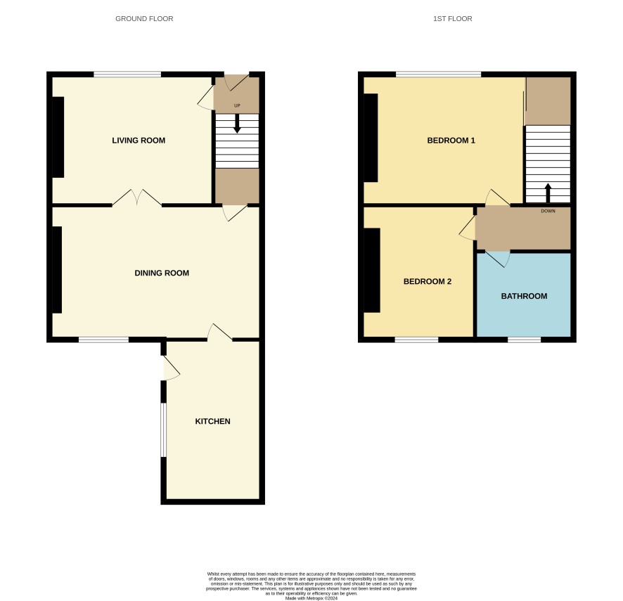 BED 1 – 3.9M X 3.6M BED 2 – 2.9M X 4.2M BATHROOM 1.9M X 4.2M