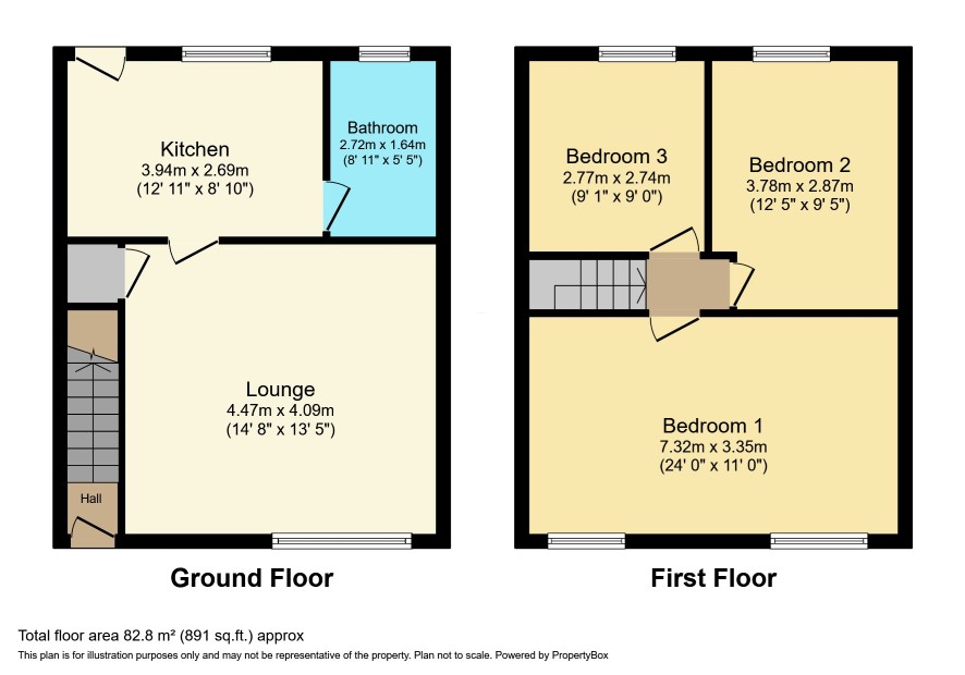 Hall Lounge 14'8 x 13'5 Kitchen 12'11 x 8'10 Bathroom 8'11 x 5'5