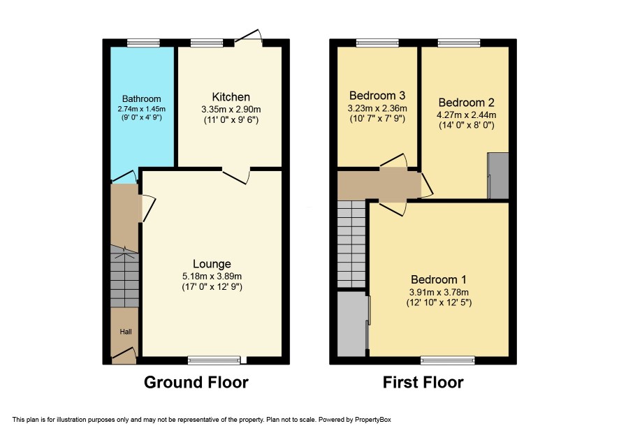 Hall Lounge 17' x 12'9 Kitchen 11' x 9'6 Bathroom 9' x 4'9