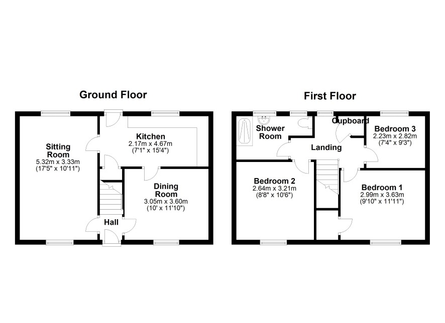Bedroom One 9'10 x 11'11 Bedroom Two 8'8 x 10'6 Bedroom Three 7'4 x 9'3 Shower Room