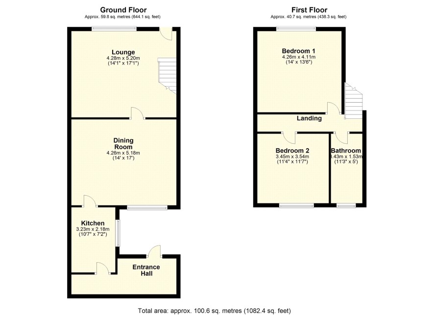 Lounge 14' x 17' Dining Room 14' x 17' Kitchen 10'7 x 7'2