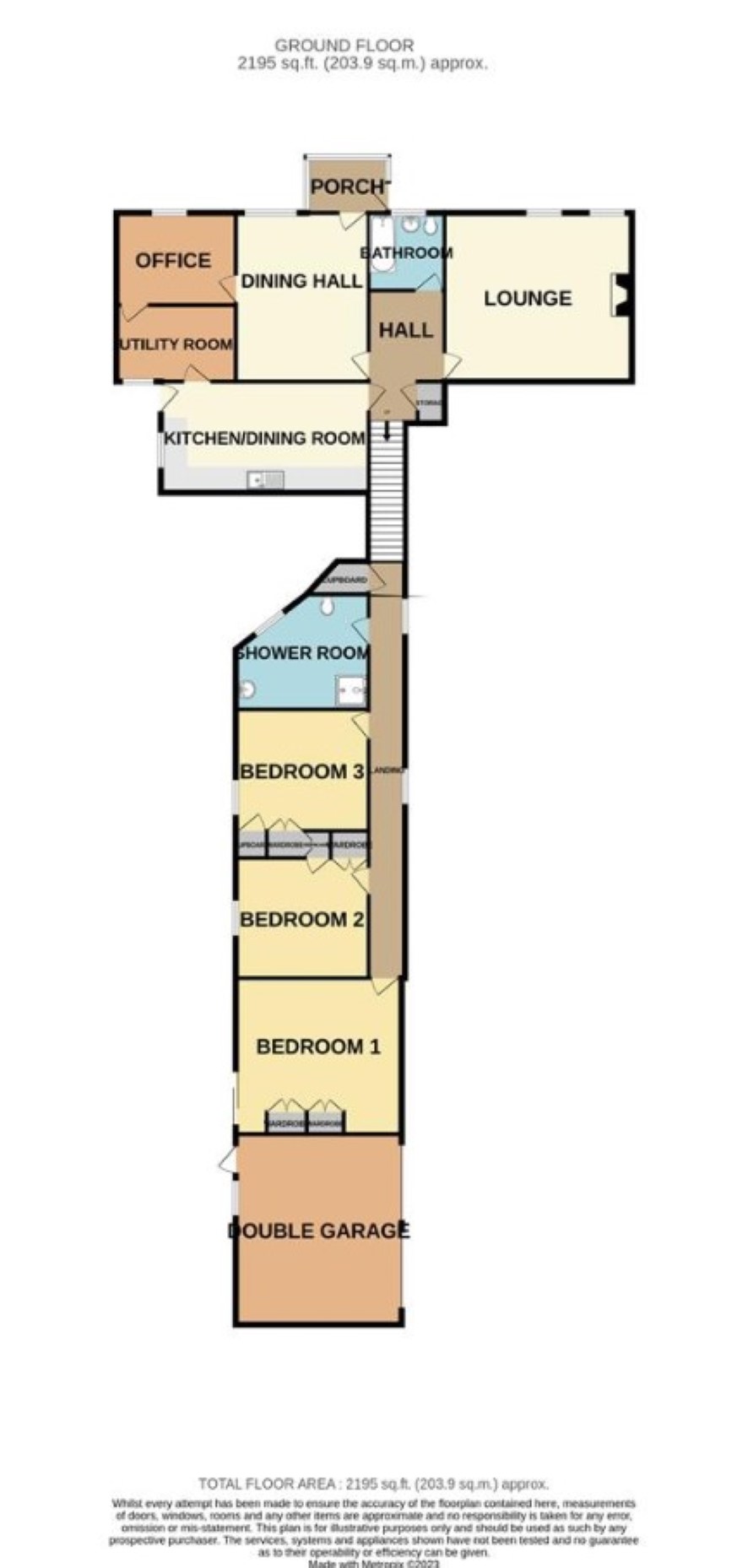 Porch with door to: Dining Room 16'4 x 12'7 Office 8'8 x 11'4 Inner Hall with walk in airing cupboard Lounge 15'9 x 17'9 Kitchen/Breakfast Room 10'6 x 19'5 with fitted base units, door to the garden Utility Room 7'3 x 10'8 Bathroom 7'4 x 7'2 with shower over bath, WC and wash hand basin Landing with built in storage cupboard Shower Room 9'8 x 10'11 with shower cubicle, WC and wash hand basin Bedroom One 15'9 x 14'6 with patio doors Bedroom Two 12'4 x 11'4 Bedroom Three 12'6 x 11'4
