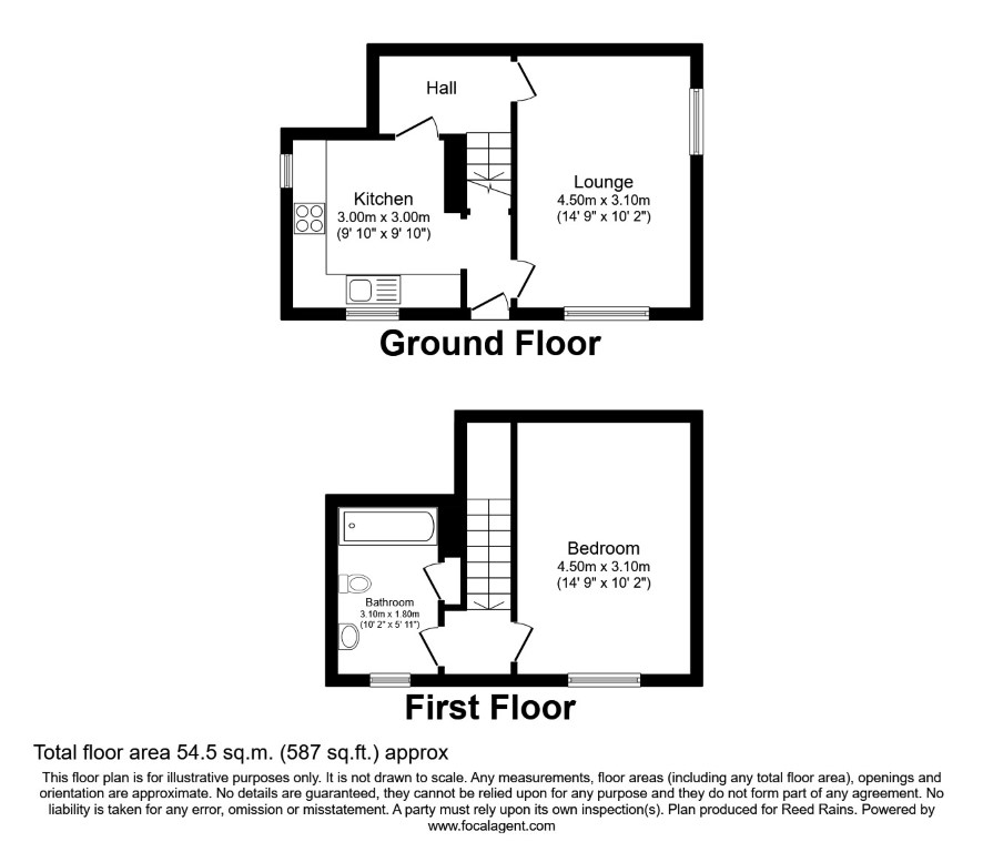 Entrance Hall Lounge - 3.1m x 4.5m Kitchen - 3m x 3m Rear Hall