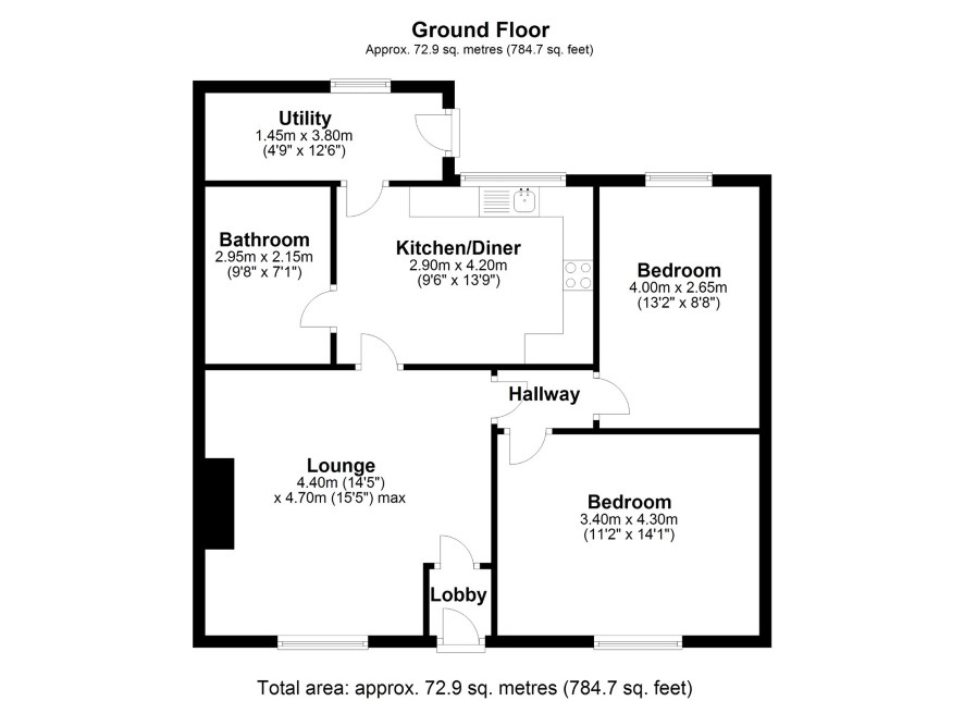 Two bedroom bungalow located in a popular residential area close to local amenities and transport links. Comprises: hall, lounge, kitchen/diner, 2 bedrooms, bathroom and utility room. In need of some updating.