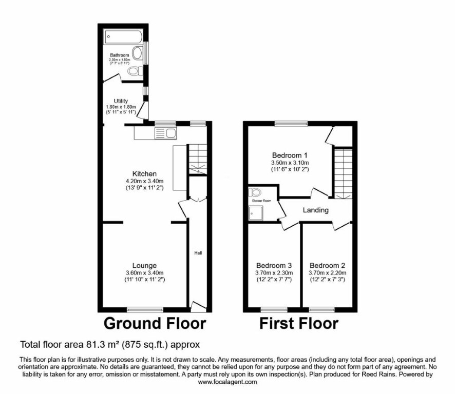 Entrance Hall Kitchen/Diner - 4.2mx3.4m Lounge - 3.6mx3.4m Utility Room - 1.8mx1.8m Bathroom/WC