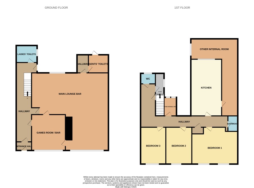L-Shaped lounge bar 9.45m (widest) x 9.60m (longest) Bar & games room 4.75m x 4.38m Ladies' and gents' toilets