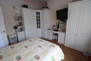 Double bedroom with a range of fitted wardrobes, window and radiator.