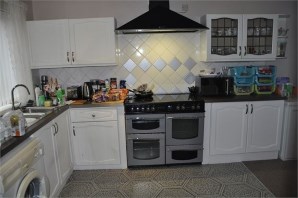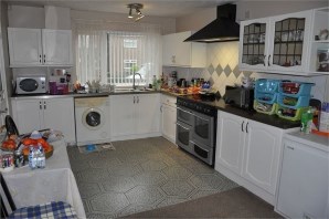 Wall and floor units with laminate work surfaces, One and a half bowl sink and drainer unit with mixer tap, 'Leisure' range style double oven with 5 ring hob, Extractor hood, Plumbed for washing machine, Walk in pantry, Double glazed window, Double glazed sliding patio door to conservatory.