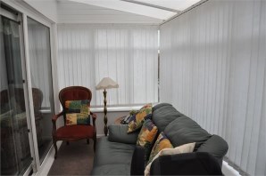 Dwarf wall, Double glazed units over, Polycarbonate roof, Carpeted floor, Door to rear external.