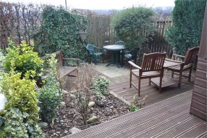Externally there is an open garden to the front with gravelled border, to the rear there is an enclosed decked garden with shed.