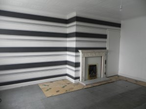 Coal effect gas fire with adams style fireplace, built in cupboard to alcove.