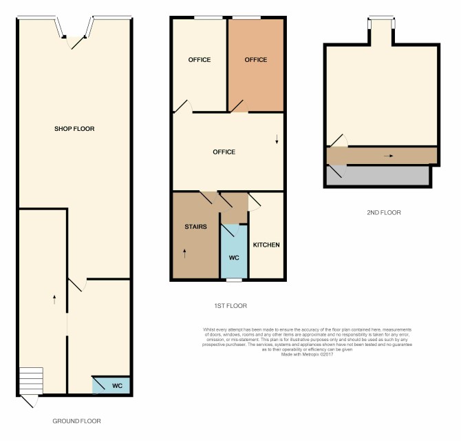 Shop floor 33’10 (max) x 15’10 Office 16’3 x 9’0 Storage area 25’6 x 6’4 W.C