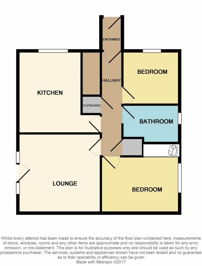 Entrance - Enter via a uPVC external door. Chrome towel radiator. Hallway - Access leads to all rooms. Built-in storage cupboard. Central heating radiator. Lounge - 3.71m x 3.53m - Spacious reception room with uPVC double glazed door to the side aspect. Laminate flooring. Double central heating radiator. Kitchen - Fitted kitchen featuring a range of wall and base units with white fascia doors. A stainless steel one and a half bowl and drainer kitchen sink is inset to worktop. Cooking facilities are provided for with a built-in oven and inset four-burner gas hob with chimney hood above. Tiled floor. Chrome towel radiator.