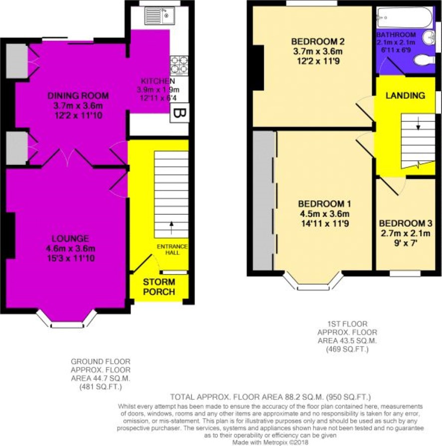 Landing Bedroom One – 4.50m x 3.60m Bedroom Two – 3.70m x 3.60m Bedroom Three – 2.70m x 2.10m Bathroom