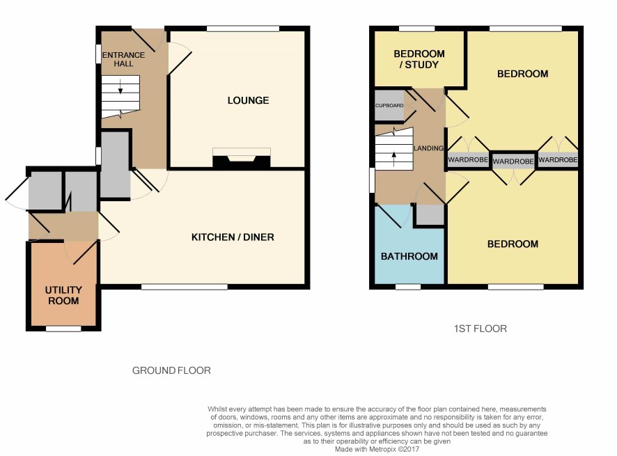 Entrance Hall - Enter via a uPVC double glazed external door. Stairs lead off to the first floor. Access to the lounge and kitchen / diner. Central heating radiator. Lounge - The focal point to this spacious reception room is a contemporary style wall mounted feature fireplace. TV point. Double central heating radiator. Kitchen/Diner - Modern fitted kitchen featuring a range of wall and base units with gloss white fascia doors. A stainless steel one and a half bowl and drainer kitchen sink with mixer tap is inset to worktop with a tiled splash-back. Cooking facilities are provided for with a stainless steel built-in oven and inset four-burner gas hob with chimney hood above. Plumbing available for an automatic washing machine. Double central heating radiator. Storage cupboard. Rear Hall - Built-in storage cupboard. Utility Room