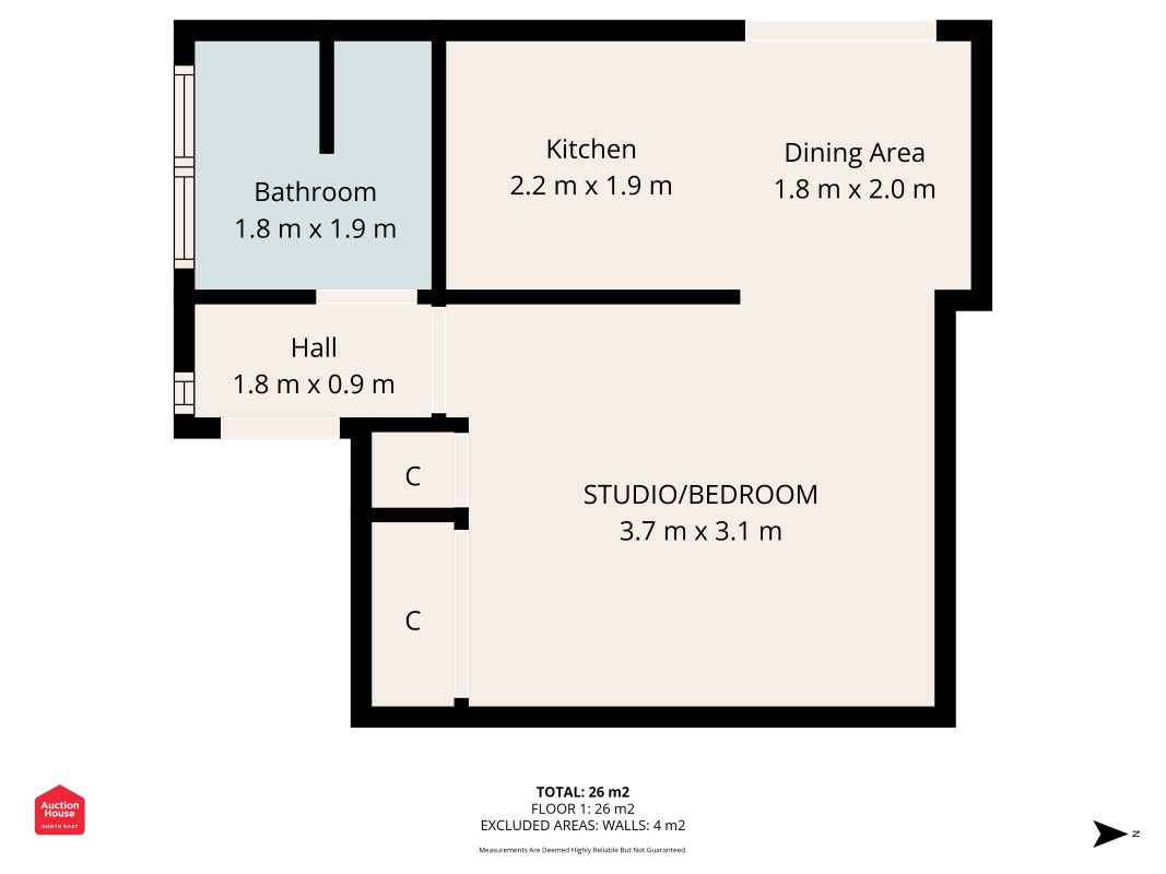Available for auction is this one-bedroom apartment right in the heart of Hexham, just minutes from the popular Beaumont Street and The Sele and within easy reach of all local amenities. The accommodation includes an entrance hall, an open-plan studio/bedroom space, a separate kitchen and dining area, and a bathroom. Two storage cupboards offer practical solutions for day-to-day living. Located close to the Benson Monument and just off Battle Hill, this property is a short walk from Hexham’s main shopping area, transport links, and leisure facilities. With its central location, practical layout, and scope for improvement, this apartment represents an excellent opportunity for buyers looking to add value.Tenure: Leasehold
