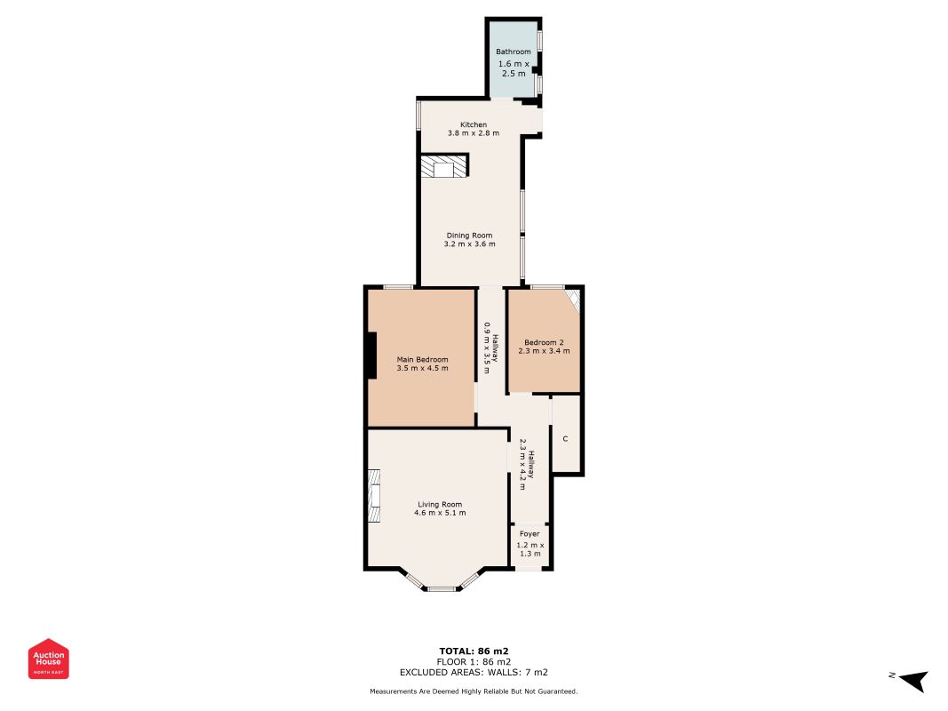 A superb opportunity to acquire a spacious two-bedroom ground floor flat situated on the ever-popular Rectory Road, just a short walk from Saltwell Park. Offered with vacant possession, this property provides generous accommodation with scope for refurbishment, making it ideal for investors, developers, or first-time buyers looking to add value. OPEN HOUSE VIEWING DATE (no booking required): FRIDAY 24th OCTOBER, 3PM - 3:30PM Accommodation The property offers approximately 86 sq. m (925 sq. ft) of living space and comprises: Entrance Hallway Providing access to all rooms. Living Room – 4.6m x 5.1m Large bay-fronted reception room featuring high ceilings, original cornicing, picture rails, and a decorative ceiling rose. A focal fireplace with surround adds character to this bright and spacious room. Main Bedroom – 3.5m x 4.5m Generously sized double bedroom to the rear with feature period fireplace and ample natural light. Bedroom Two – 2.3m x 3.4m A single or small double bedroom ideal as a study, nursery, or guest room. Dining Room – 3.2m x 3.6m A flexible second reception/dining space leading through to the kitchen. Kitchen – 3.8m x 2.8m Fitted with base and wall units, integrated oven and hob, and stainless steel sink. Door providing access to the rear yard. Bathroom – 2.5m x 1.6m Modern white suite comprising panelled bath with overhead shower, wash basin, and WC. Fully tiled with heated towel rail. Rear Yard Enclosed rear yard with pedestrian access to the service lane. Features & Benefits -Traditional period features throughout -Gas central heating -Vacant possession – no onward chain -Requires internal modernisation – excellent value-add potential -Popular residential area with strong rental demand Location -Positioned in a sought-after area of Bensham, the property is ideally located close to a range of local amenities, schools, and transport links. -Just 0.4 miles from Saltwell Park -1.2 miles from