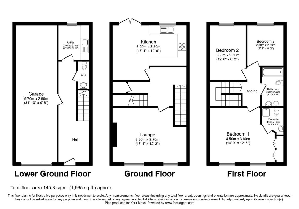 A rare opportunity to purchase a spacious three-storey townhouse situated in an exceptionally convenient location close to Durham City Centre, Durham University, and the leafy Leazes conservation area. Offering approximately 1,565 sq. ft. of accommodation, this substantial property represents an appealing prospect for investors, developers, and private buyers alike. Positioned within an attractive modern terrace, the home features distinctive bay windows, an integral garage, driveway parking, and a private rear garden in need of attention—presenting clear scope for improvement and value enhancement. Accommodation Lower Ground Floor: A substantial 31' integral garage offering excellent storage, workshop or conversion potential (subject to consent). Hallway, WC, and utility room with door leading to the rear garden. Ground Floor: A bright, generously sized 17' lounge with feature fireplace, wood flooring, and dual-aspect bay windows overlooking mature greenery. To the rear lies the well-proportioned kitchen/dining room, fitted with a range of units and integrated appliances, along with French doors opening toward the garden. First Floor: Three bedrooms including a spacious master bedroom with en-suite, a second double bedroom, and a third single bedroom or study. A family bathroom serves the remaining rooms. Exterior A private rear garden arranged across two levels, currently overgrown and requiring clearance—offering excellent potential for landscaping and redesign. Driveway parking is provided at the front in addition to the large garage. Key Features Traditional Auction Sale Three-storey townhouse in Durham City Three bedrooms (master with en-suite) Large lounge with feature fireplace Spacious kitchen/diner with French doors Integral 31' garage + driveway Rear garden requiring improvement Excellent investment or redevelopment potential Close to the City Centre, University & amenities Auctioneer’s Note This proper