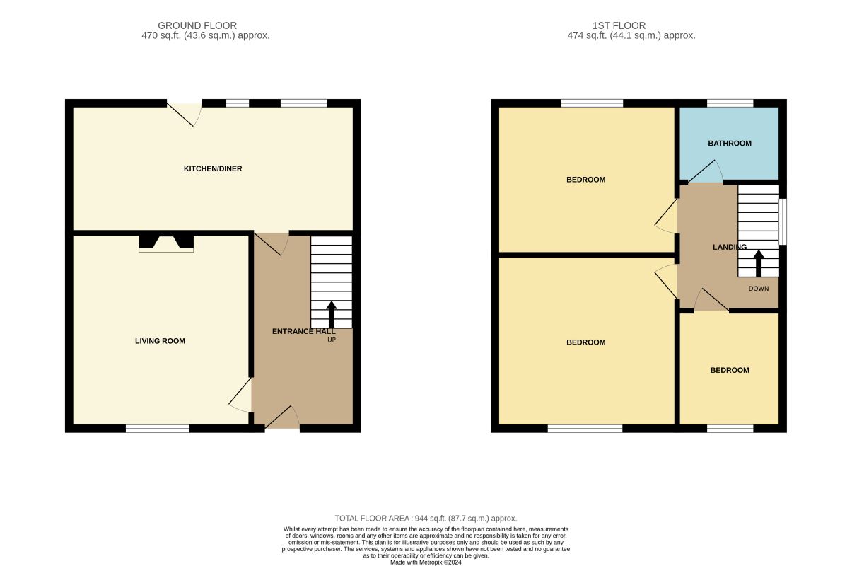 Ground Floor Living Room - 3.96m x 4.25m Dining Kitchen - 6.24m x 2.81mFirst Floor Bed 1 - 3.97m x 3.77m Bed 2 - 3.97m x 3.58m Bed 3 - 2.09m x 1.72m Bathroom - 2.56m x 2.53mAuctioneer's Notes Property construction - Standard Electricity supply - Mains Water supply - Mains Sewerage - Mains Heating – Gas Broadband - Standard Speed - 17 mbps Mobile
