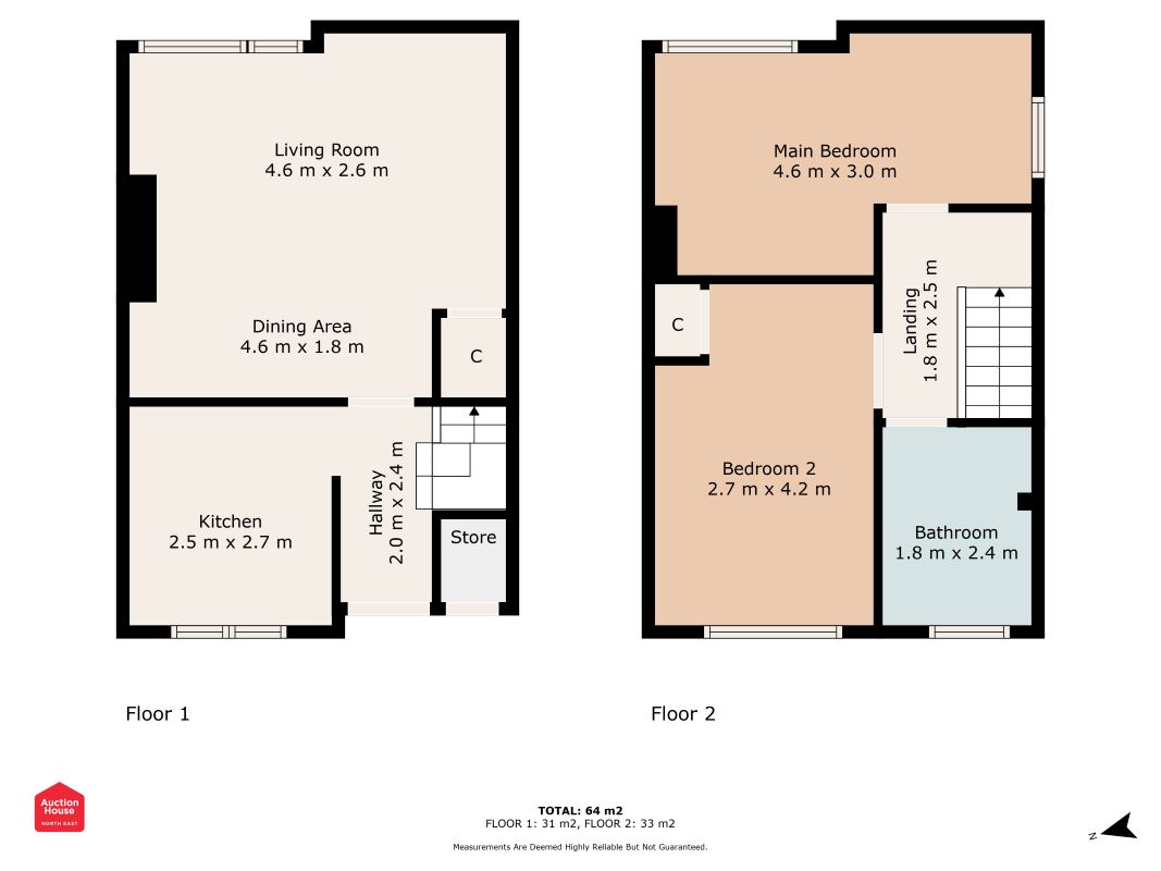 This spacious two bedroom maisonette is ideally situated in a central spot on Byron Close, within The Square in Guidepost, Northumberland. The property benefits from a highly convenient location, within close proximity to a range of local amenities. The nearby towns of Morpeth and Ashington are easily accessible by car and has excellent transport links. Upon entry, the hallway provides access to the kitchen and lounge area. A staircase leads to the upper floor, where you’ll find two well double bedrooms and a bathroom with WC. Externally, the maisonette enjoys access to a car park offering off-road parking, as well as a small green space to the front of the property. It is essential that all parties complete their own due-diligence on any auction property, ensuring they read the full legal pack prior to bidding. Tenure: LeaseholdEPC Rating: C