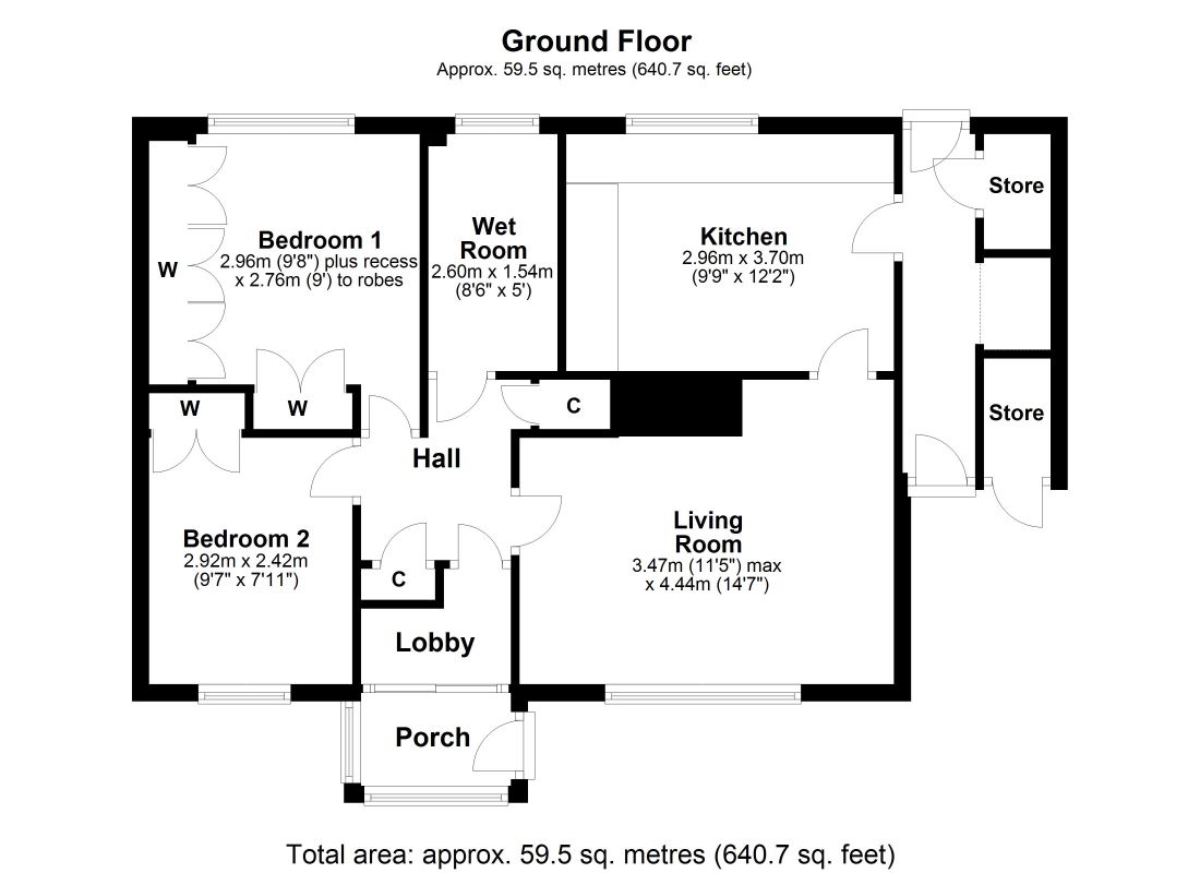 This well presented and well proportioned detached bungalow has uPVC double glazing and gas central heating, via Worcester combi. boiler (fitted in 2017). The accommodation comprises: front porch with a sliding door into the entrance lobby, which has a door to the hallway where there is a cupboard housing the combi. boiler, another cupboard and a hatch to the loft space. Off the hallway, to the right, is the lounge, which has a gas fire with a wooden surround and a marble hearth, with a door leading through to the rear kitchen, which is fitted with wooden-fronted units, a one-and-a-half bowl sink, integrated fridge, integrated freezer and an electric cooker. Also off the hallway are the two bedrooms - both with built-in wardrobes and the larger, rear bedroom with additional fitted wardrobes - and a wet room with a Mira Advance electric shower. Off the kitchen there is a covered passage with doors to the front and rear - to access the gardens - and with two store cupboards, one of which is accessed from the front garden. There is a lawned garden to the front of the house, extending to one side, with a flagged path, and a lawned garden to the rear, which also has a flagged path. Runnymede Gardens is situated off Valley Dene, which is itself off Mill Road in Chopwell, close to the recently built Moorland Green estate. It is approximately half a mile from Chopwell village centre, where there are some shops and amenities, and less than a mile up the hill from Blackhall Mill, which has a popular cafe/bakery and pottery/florist shop. It is 4.3 miles from Rowlands Gill, along the A694, 11 miles from Newcastle and 14 miles from Newcastle International Airport. There are several popular countrywide walks and cycle routes in the area, including the Red Kite trail and the Derwent Walk.Tenure: FreeholdEPC Rating: D