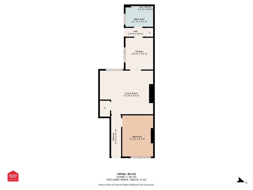 Auction House North East are delighted to present this substantial end-terrace property, comprising two self-contained flats (1 & 1A), located on George Street in Ashington. Offering excellent potential for investors, this property provides the opportunity to generate a healthy rental income or refurbish and resell. Property Layout: 1 George Street (Ground Floor Flat, approx. 59 m²) -Entrance hallway -Spacious living room (5.8m x 4.3m) -Fitted kitchen -Bathroom -Large double bedroom (3.1m x 4.1m) 1A George Street (First Floor Flat, approx. 74 m²) -Hallway and stairs to first floor -Generous living room (5.5m x 4.3m) -Fitted kitchen -Bathroom -Main bedroom (3.2m x 4.2m) -Second bedroom (2.2m x 3.2m) Externally: The property benefits from a walled front garden and a rear yard, with separate access for each flat. Investment Potential: Estimated combined rental income once refurbished: £10,000 – £12,000 per annum (subject to market conditions). Ideal for buy-to-let investors, landlords looking to expand their portfolio, or those seeking a refurbishment project. Location: Situated close to Ashington town centre, the property is within easy reach of local shops, schools, amenities, and public transport links. Road connections via the A189 provide convenient access to Newcastle, Blyth, and the surrounding areas. Summary: -Freehold end-terrace property split into two flats -Vacant possession – refurbishment required -Strong rental demand in the area -Excellent investment or resale potentialTenure: FreeholdEPC Rating: D