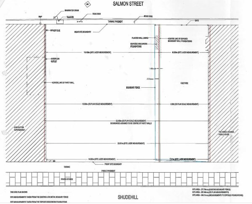 Prime development site situated fronting Shudehill and backing onto Salmon Street in the Northern Quarter area of Manchester City Centre. The site is considered suitable for development with lapsed planning permission (Application Ref: 080087/FO/2006/C1, dated January 2007 which has now expired), for the erection of a six storey building comprising 9 apartments (six 2 bed apartments and three 1 bed apartments) plus a ground floor retail unit and basement. The site currently generates income of £400 per month. The tenant occupies under the terms of a four month licence which commenced 1 July 2020, outside of the Landlord and Tenant Act 1954. The site also generates income from providing access for a company to paint advertising murals on the wall of the adjacent building. This is under an informal arrangement, approx 6 murals per year @ £1,250 each for access. Please refer to legal pack for full details. The site fronts Shudehill opposite the transport interchange (tram stop) and spans back to Salmon Street to the rear and is ideally located close to all City Centre amenities, including the Crowne Plaza and Holiday Inn hotels, and the Arndale Shopping Centre. Nearby entertainment and leisure destinations include the Printworks, the National Football Museum, Mackie Mayors and the Frog & Bucket. Bidders are advised to make their own site inspection and enquiries with the Council’s planning department to satisfy themselves that a proposed scheme can be designed within the ownership boundaries of the land which is believed to be 6.493 metres in width.