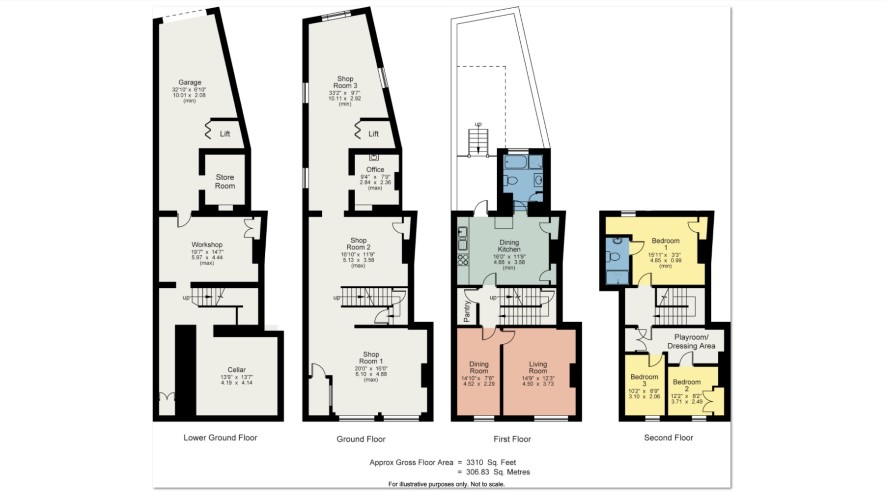 Ideally located for Carnforth Town centre amenities, schools and shops etc. Close to excellent road and rail transport links via the A6, M6 and railway station in Carnforth. Accommodation (with approx. dimensions) Ground Floor Shop Room One 20' 0" x 16' 0" (6.1m x 4.88m)(max) Shop Room Two 16' 10" x 11' 9" (5.13m x 3.58m)(max) Shop Room Three 33' 2" x 9' 7" (10.11m x 2.92m)(min) First Floor Dining Room 14' 10" x 7' 6" (4.52m x 2.29m) Living Room 14' 9" x 12' 3" (4.5m x 3.73m) Kitchen Diner 16' 0" x 11' 9" (4.88m x 3.58m)(min) Bathroom Outside To the rear of the kitchen, a door leads out onto a secure wooden decked terrace. Second Floor Bedroom One 15' 11" x 3' 3" (4.85m x 0.99m) Ensuite Shower Room Dressing Room Bedroom Two 12' 2" x 8' 2" (3.71m x 2.49m) Bedroom Three 10' 2" x 6' 9" (3.1m x 2.06m) Basement Cellar Room 13' 9" x 13' 7" (4.19m x 4.14m Store Room/Workshop 19' 7" x 14' 7" (5.97m x 4.44m)(max) Garage 32' 10" x 6' 10" (10.01m x 2.08m)(min) Services Mains electric, mains gas, mains water and mains drainage. Please refer to legal pack for additional fees and the Auction Information document for guidance prior to bidding.