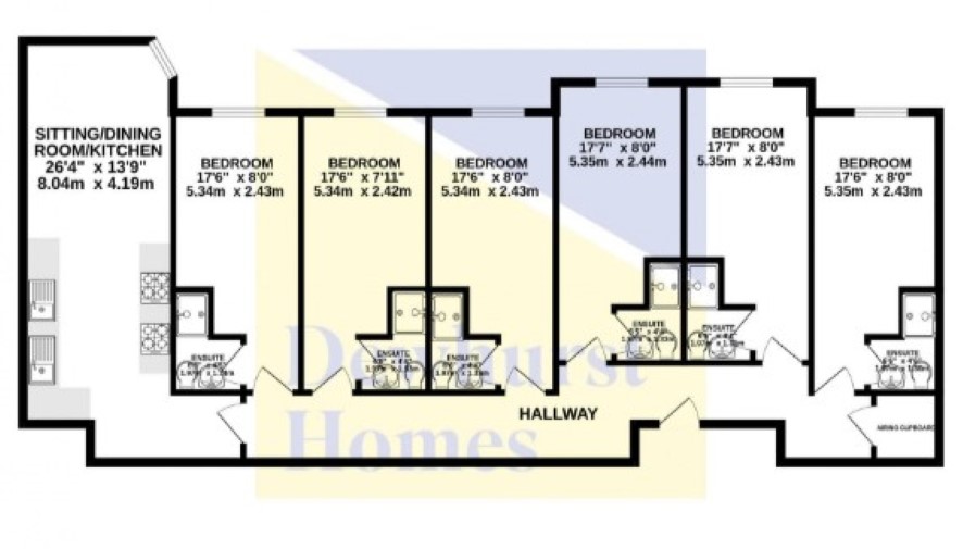 Comprising a fully furnished six-bedroom student pod within a modern four storey purpose-built student accommodation, immediately adjacent to the campus of the University of Central Lancashire (UCLAN). Unit B47 briefly provide six ensuite bedrooms and communal kitchen / lounge situated on the third floor of a four-storey student building. Leighton Hall offers communal areas with a games room and a laundry room. With a reception and on-site security the development is gated and offers parking at a further cost. We are informed that the unit totals approximately 112.02 sq m (1,203 sq ft). We are informed that the rents are set at £115 per week per bed. We understand that the rents are all inclusive (excluding TV licence). We understand that the whole of the property is ‘fractionally owned’ which is a term used to describe an ownership where the costs of an asset is split equally between each owner, meaning that even though each tenant has signed an individual AST agreement the income is divided equally between each owner. Even when the rooms are vacant it means that each owner will receive a split of the rental income. The current occupancy rate across the whole of Leighton Hall is now 85%, which means each fractional owner will get an equal cut per room of this figure. Finance is available on this lot. For a decision-in-principle visit togethermoney.com/amydip/