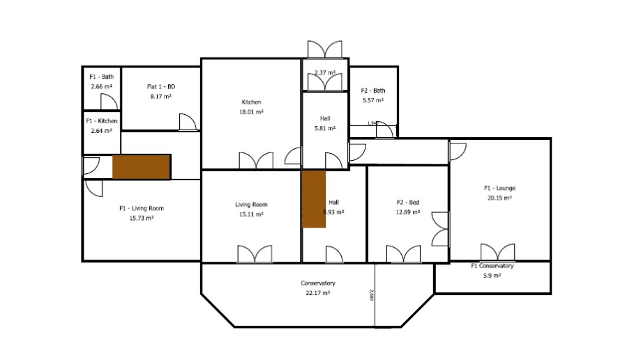 This can be accessed from the conservatory entrance of the main house as well as the main house hallway. Comprises of an open plan kitchen/living room, bedroom and bathroom.