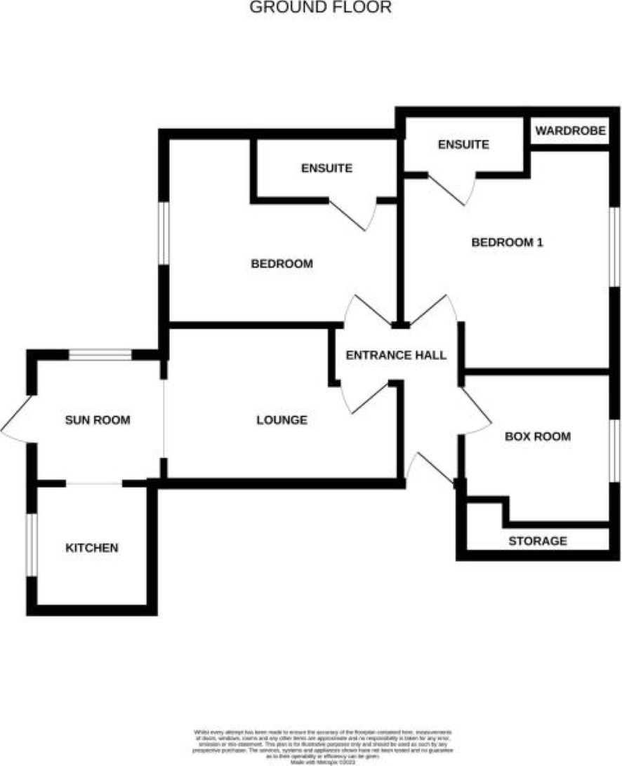 Entrance Hall 2.08 x 2.54 (6'10? x 8'4? ) Lounge 2.54 x 3.79 (8'4? x 12'5? ) Kitchen Bedroom 1 3.59 x 3.43 (11'9? x 11'3? ) Bedroom 1 En-Suite 1.01 x 2.03 (3'4? x 6'8? ) Bedroom 2 3.06 x 3.79 (10'0? x 12'5? ) Bedroom 2 En-Suite 1.07 x 2.35 (3'6? x 7'9? ) Box Room 2.45 x 2.46 (8'0? x 8'1? ) Sun Room