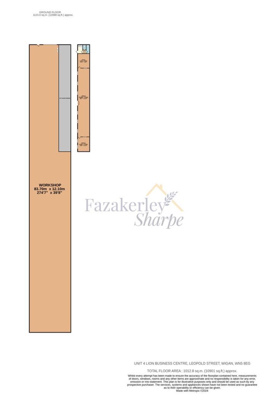 High-bay industrial unit of blockwork base walls with corrugated sheeting above and to the roof, supported on a steel truss frame. To the front elevation is a substantial roller shutter loading door. Internally the main unit is open plan with offices and ancillary space. The unit benefits from a gantry crane serving a 10-tonne traveller and mains services. The internal accommodation comprises a total GIA 1,012.8 m2 / 10,901 sq. ft The unit is accessed from Smethurst Lane. The property is available freehold with vacant possession granted upon completion. Unit 4 Lion Business Centre is situated in the Pemberton district of Wigan, approximately 1.5 miles from junction 26 of M6 and M58, 10 miles south-west of Bolton, 12 miles north of Warrington and 16 miles north-west of Manchester. Tenure: Freehold Title number: GM420347{tab} Local Authority: Wigan Finance is available on this lot. For a decision-in-principle visit togethermoney.com/amydip/