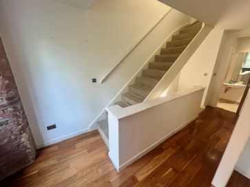 Ground Floor - Entrance: Private front door with glazed panel to the side. Walnut wooden flooring throughout ground floor, picture window to living room, stairs rise to the first floor and double wooden doors lead through in to the lounge. Living Area: Further multi pane double glazed doors lead back out on to the wooden decking of the communal gardens, feature exposed brickwork, two cast iron columns, From reception hallway carpeted stairs rise to the first floor accommodation. First Floor - Bespoke Kitchen: finished to the highest of specifications, with ample wall and base units with Corian moulded work surfaces and moulded sink and drainer together with tiled splashbacks, Dining Room: Walnut flooring, radiator, double glazed window encased in exposed brickwork overlooking the communal gardens. From first floor carpeted staircase rises to the second floor accommodation.. Second Floor - Shower Room: Walk in fully tiled wet area with shower, further WC and hand wash basin. Utility Room: Space and plumbing for washer dryer and further cupboard housing gas boiler. Bedroom One: Large Double Bedroom, carpeted with feature wall of exposed brickwork housing double glazed window overlooking the communal gardens and door to en-suite. Bedroom Two: Carpeted with feature wall of exposed brickwork housing double glazed window overlooking the communal gardens. Walk In Wardrobe: Carpeted room with fitted wardrobes & drawers. Bathroom: Fitted with a white suite incorporating oval bath with side fittings, his and hers sinks on granite plinth with full width vanity mirror, WC, walk in shower cubicle with rain shower and side jets, heated towel rail, tiled to half height.