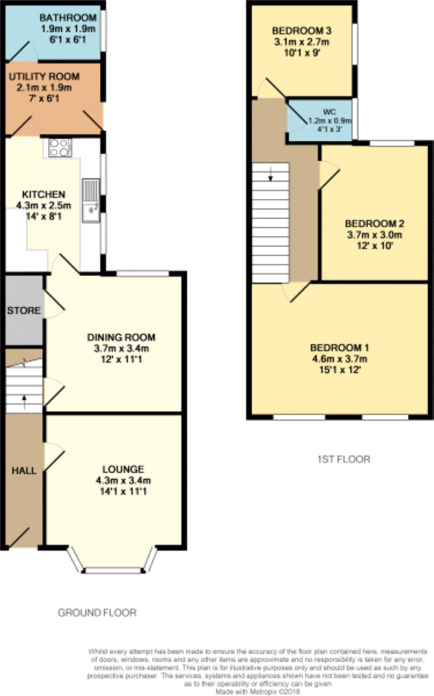 Entrance hall, lounge, dining room, kitchen, utility, bathroom, first floor landing, bedroom one, bedroom two, bedroom three, wc. Gardens, gas central heating & double glazing where fitted.