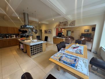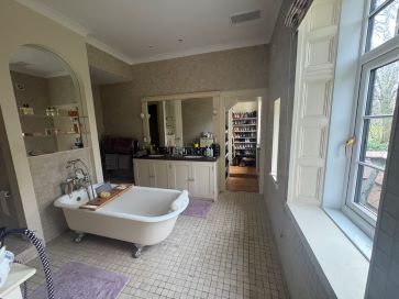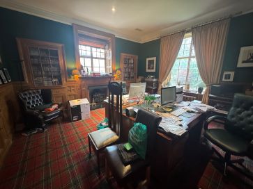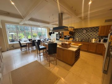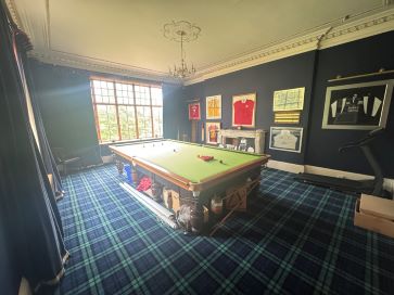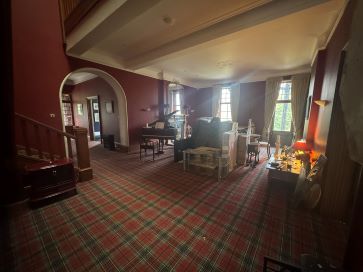 Exciting opportunity to acquire Kinnell House, an elegant arts and crafts mansion house built in 1888, located in the picturesque village of Howwood, ten miles from Glasgow Airport. The property is keenly priced, with almost 25% reduction on the home report based on the Guide Price. This stunning home sits in approximately three acres of mature garden grounds, which incorporate a walled garden and a wildlife pond with fishing rights. The ground floor accommodation comprises an entrance porch, grand reception hall with arch and dining area with fireplace, billiards room, stunning formal lounge, study, large open kitchen/dining area open plan to family room, conservatory, two utility areas and two WCs. A timber staircase leads to the upper floor, which comprises a shower room and seven bedrooms – master with en suite and dressing area, bedroom two with en suite. Stairs from the landing lead to the second floor/attic level, which comprises two bedrooms, a shower room and three storage rooms. When the roof was replaced, three bedrooms on the second floor/attic level had the dormer windows removed and are utilised as storage spaces now. This charming house has a wealth of period features including wood panelling, ornate cornicing, beautiful marble fireplaces, and there is a terrific balcony at the front overlooking the garden with views to Glasgow. The property has approximately three acres of mature gardens, incorporating a tree lined driveway, a walled garden, and a wildlife pond with overflow leading to further, ornate pond. There is a triple garage, summer house, boiler house, and outhouses including a workshop and store. Council Tax Band: E.