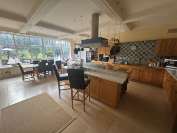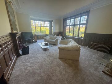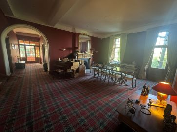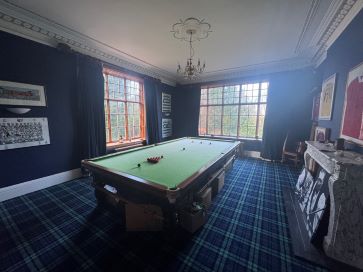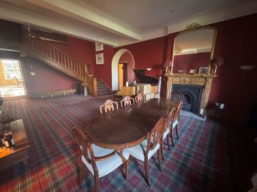 Exciting opportunity to acquire Kinnell House, an elegant arts and crafts mansion house built in 1888, located in the picturesque village of Howwood, ten miles from Glasgow Airport. The property is keenly priced, with almost 25% reduction on the home report based on the Guide Price. This stunning home sits in approximately three acres of mature garden grounds, which incorporate a walled garden and a wildlife pond with fishing rights. The ground floor accommodation comprises an entrance porch, grand reception hall with arch and dining area with fireplace, billiards room, stunning formal lounge, study, large open kitchen/dining area open plan to family room, conservatory, two utility areas and two WCs. A timber staircase leads to the upper floor, which comprises a shower room and seven bedrooms – master with en suite and dressing area, bedroom two with en suite. Stairs from the landing lead to the second floor/attic level, which comprises two bedrooms, a shower room and three storage rooms. When the roof was replaced, three bedrooms on the second floor/attic level had the dormer windows removed and are utilised as storage spaces now. This charming house has a wealth of period features including wood panelling, ornate cornicing, beautiful marble fireplaces, and there is a terrific balcony at the front overlooking the garden with views to Glasgow. The property has approximately three acres of mature gardens, incorporating a tree lined driveway, a walled garden, and a wildlife pond with overflow leading to further, ornate pond. There is a triple garage, summer house, boiler house, and outhouses including a workshop and store. Council Tax Band: E.