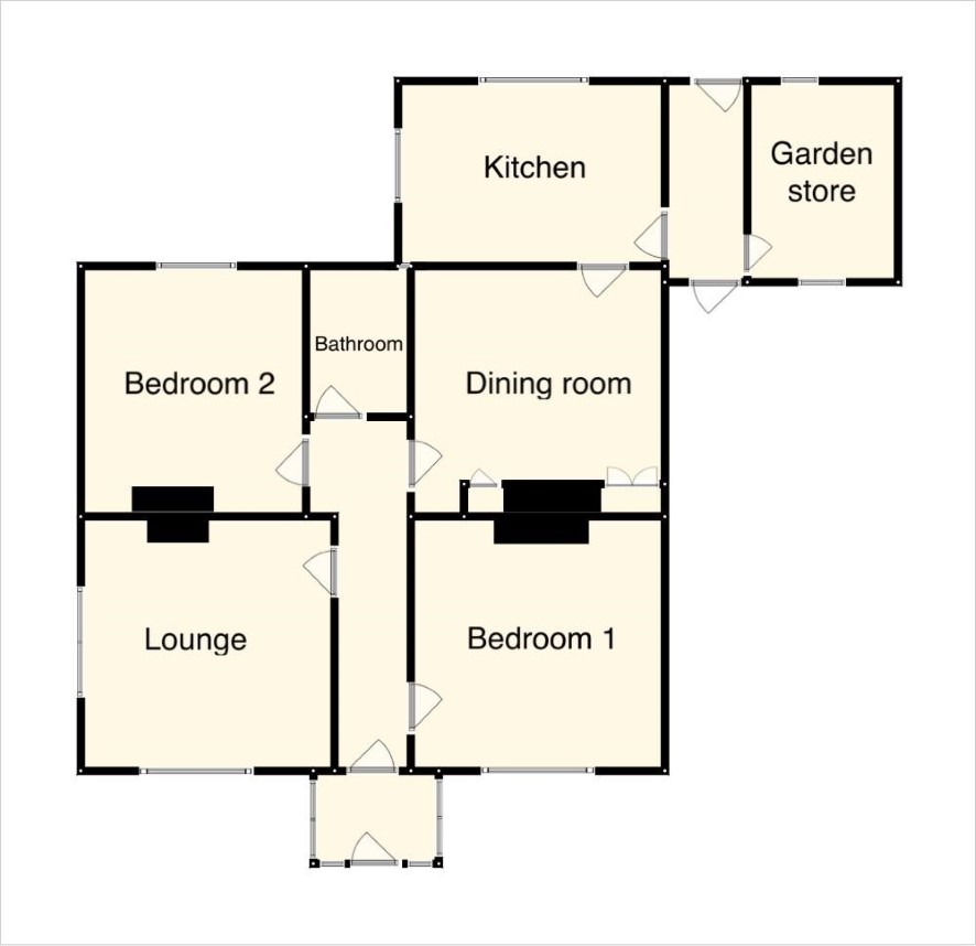 ENTRANCE PORCH 6' 0" x 4' 4" (1.83m x 1.32m) LOUNGE 12' 6" x 11' 5" (3.81m x 3.48m) DINING ROOM 12' 6" x 10' 7" (3.81m x 3.23m) KITCHEN / BREAKFAST ROOM 13' 2" x 8' 11" (4.01m x 2.72m) BEDROOM 1 12' 6" x 11' 5" (3.81m x 3.48m) BEDROOM 2 11' 0" x 11' 0" (3.35m x 3.35m) BATHROOM GARAGE 20' 0" x 10' 2" (6.1m x 3.1m) GARDEN STORE 9' 10" x 7' 4" (3m x 2.24m)