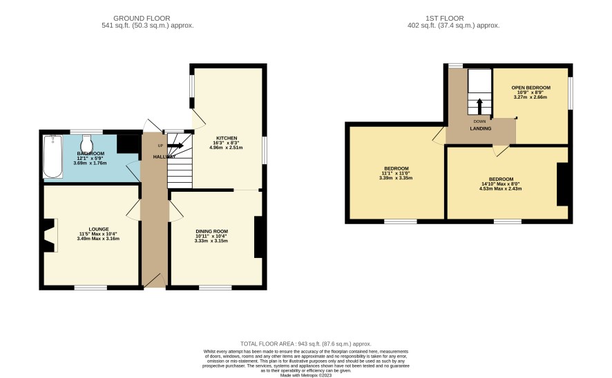 Entrance Hallway Living Room 3.49m x 3.16m Reception Room Two 3.33m x 3.15m Kitchen/Dining Room 4.96m x 2.51m (min) Bathroom 3.69m x 1.76m First Floor Landing and Former Bedroom Three Bedroom One 3.40m x 3.35m Bedroom Two 4.53m x 2.42m