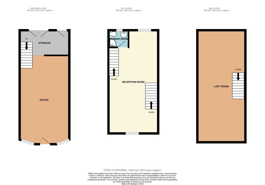 GROUND FLOOR Commercial unit – 22’4" x 12’6" Storage room – 6’5" x 12’6" FIRST FLOOR Reception room – 26’0" x 12’8" Shower room – 4’3" x 5’0" SECOND FLOOR Loft space – 28’3" x 12’6"
