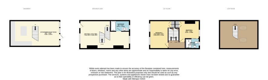 GROUND FLOOR Open Plan Living Room - 24'5''max. x 13'11''max. (7.45m x 4.23m) Bathroom - 9'5'' x 5'3'' (2.87m x 1.61m) LOWER GROUND FLOOR Open Plan Kitchen / Dining Room - 24'5'' x 12'8'' (7.45m x 3.87m) FIRST FLOOR Bedroom 1 - 10'6'' x 10'' (3.21m x 3.05m) Ensuite - 7' x 5' (2.13m x 1.53m) Bedroom 2 - 13'11'' max. x 10'7'' (4.23m max. x 3.22m) Loft Room