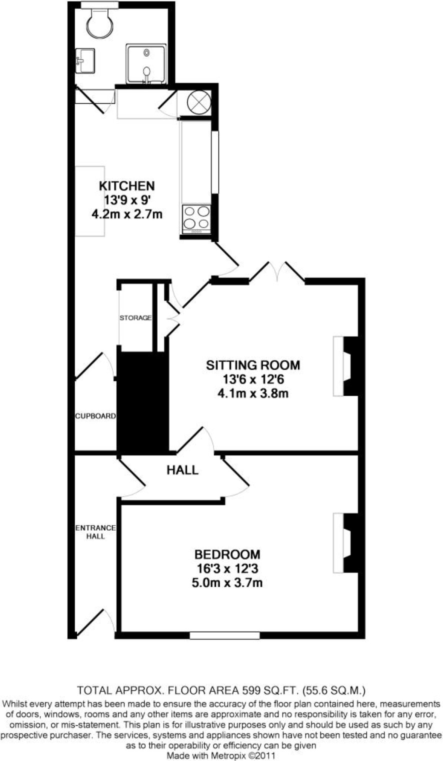 Communal Hallway Hall Bedroom - 16'3'' x 12'3'' (5m x 3m) Living Room - 13'6'' x 12'6'' (4.1m x 3.8m) Kitchen - 13'9'' x 9' (4.2m x 2.7m) Shower Room