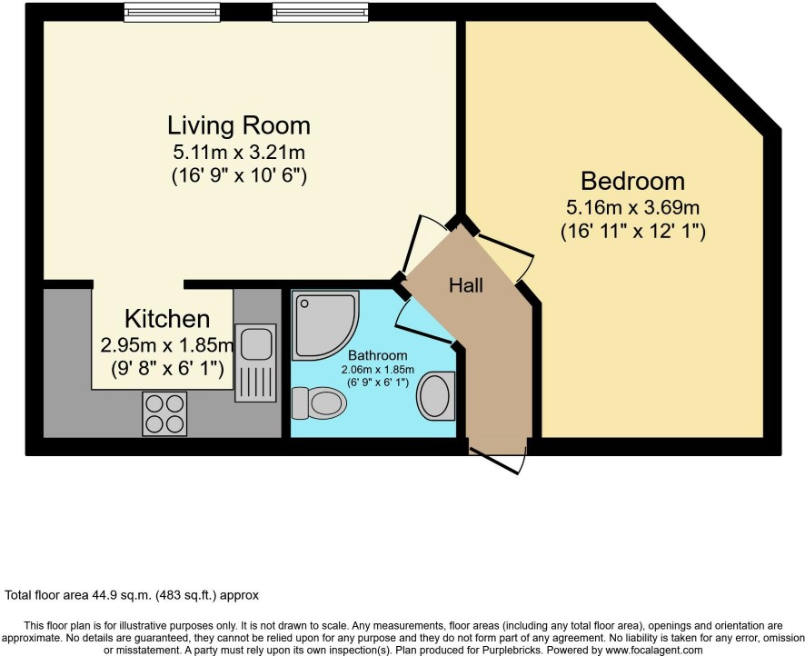 Hallway Living / Dining Room - 5.11m x 3.21m (16'9'' x 10'6'') Kitchen - 2.95m x 1.85m (9'8'' x 6'1'') Shower Room - 2.06m x 1.85m (6'9'' x 6'1'') Bedroom - 5.16m max. x 3.69m max. (16'11'' max. x 12'1'' max.)