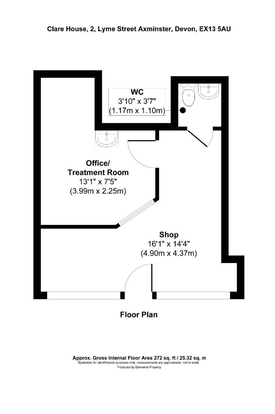 Shop 16'1" x 14'4" (4.90m x 4.37m) Office/Treatment room 13'1" x 7'5" (3.99m x 2.25m) WC 3'10" x 3'7" (1.17m x 1.10m)