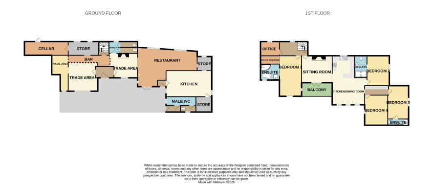 GROUND FLOOR LOUNGE BAR BAR SERVERY UTILITY AREA CELLAR RESTAURANT AREA LADIES TOILET LIFT - Providing access to first floor accommodation. KITCHEN STORE ROOM FIRST FLOOR BEDROOM 1 EN SUITE BATHOOM OFFICE/UTILITY - With plumbing LOUNGE BALCONY MODERN FITTED KITCHEN/DINER/FAMILY ROOM LIFT - Access to ground floor. BEDROOM 2 EN SUITE SHOWER ROOM BEDROOM 3 INNER HALLWAY/UTILITY AREA BEDROOM 4 EN SUITE SHOWER ROOM NOTE: The private accommodation provides spacious and versatile living quarters. It could be utilised for multi generational living, or alternatively for letting or Airbnb, depending upon a purchaser's requirements. OUTSIDE Directly to the front of the property is a paved patio area with picnic tables and chairs and an ornamental wishing well. To the side is a timber storage shed which is utilised as an outside bar. Adjacent to the trade patio are the gents toilets. Directly to the front of the pub just below the trade patio is a car parking area with space for approx. 10 vehicles. SERVICES We understand that mains water, electricity and drainage are connected to the property. The premises have the benefit of an oil-fired central heating system