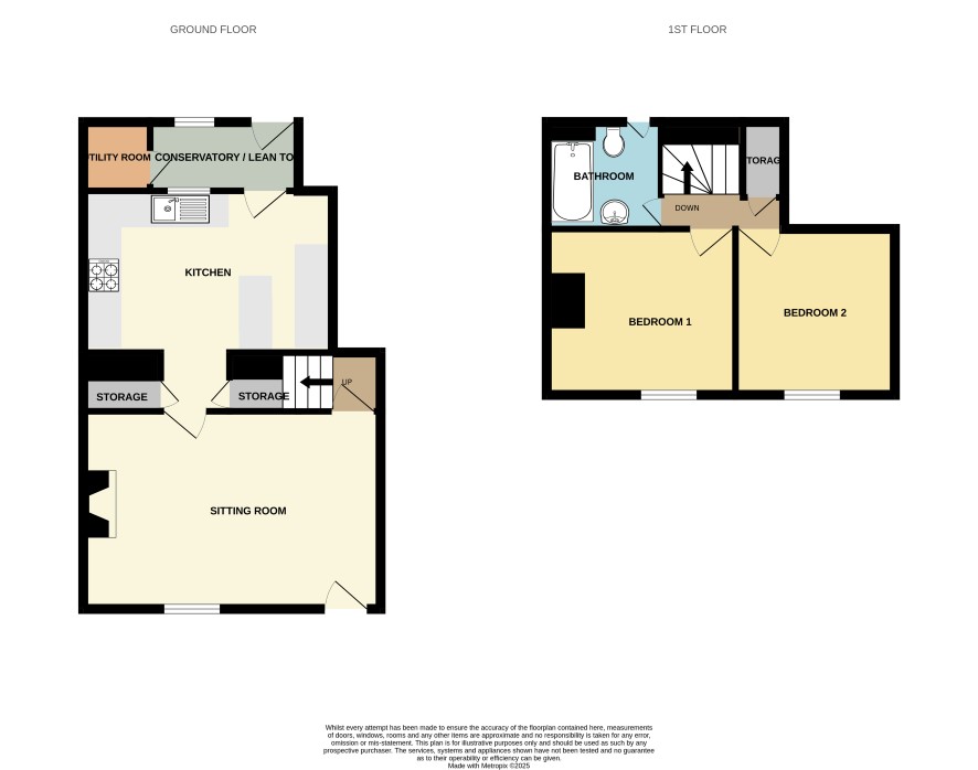 Sitting Room - 5.36m x 3.58m Kitchen/Diner - 4.51m x 2.98m Lean to/Conservatory - 2.67m x 1.2m Bedroom One - 3.4m x 3.09m Bedroom Two - 2.87m x 3.06m Bathroom - 2.07m x 1.99m