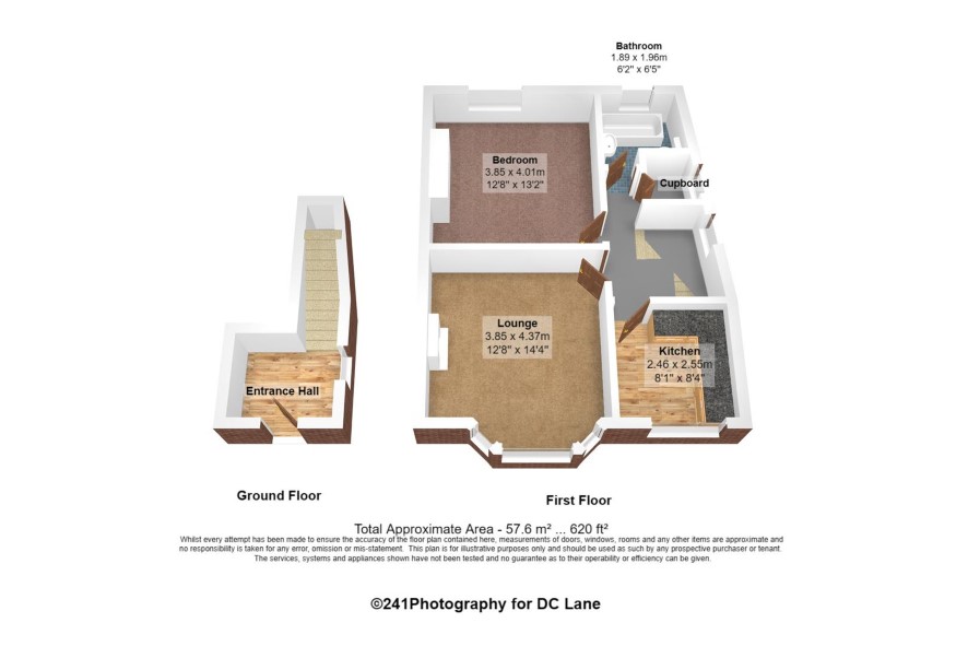 FIRST FLOOR Sitting Room: 3.85m x 4.37m Kitchen: 2.46m x 2.55m Bedroom: 3.85m x 4.01m Bathroom: 1.89m x 1.96m